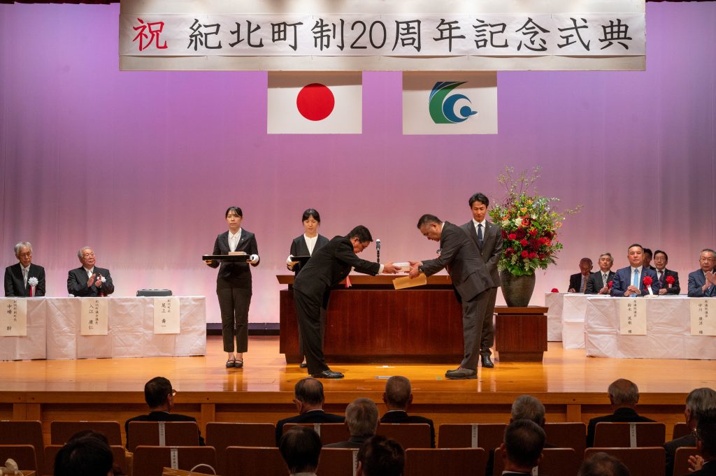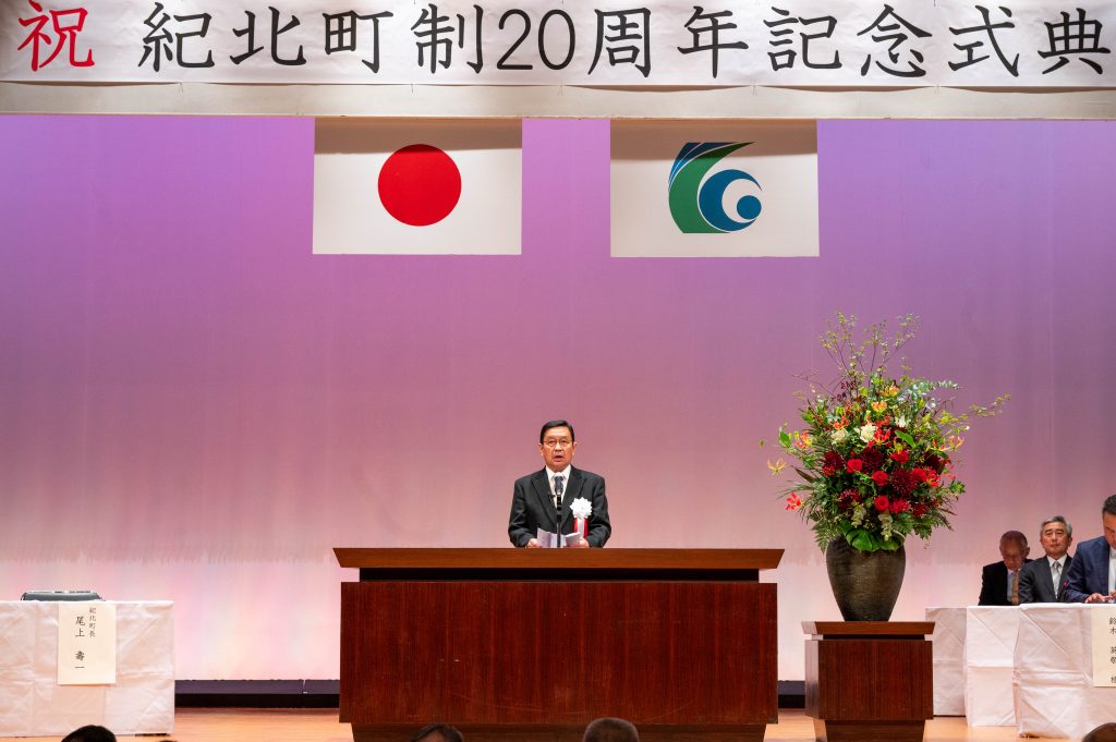紀北町制20周年記念式典が9月28日(日曜日)に、紀北町海山公民館ホールで行われました。